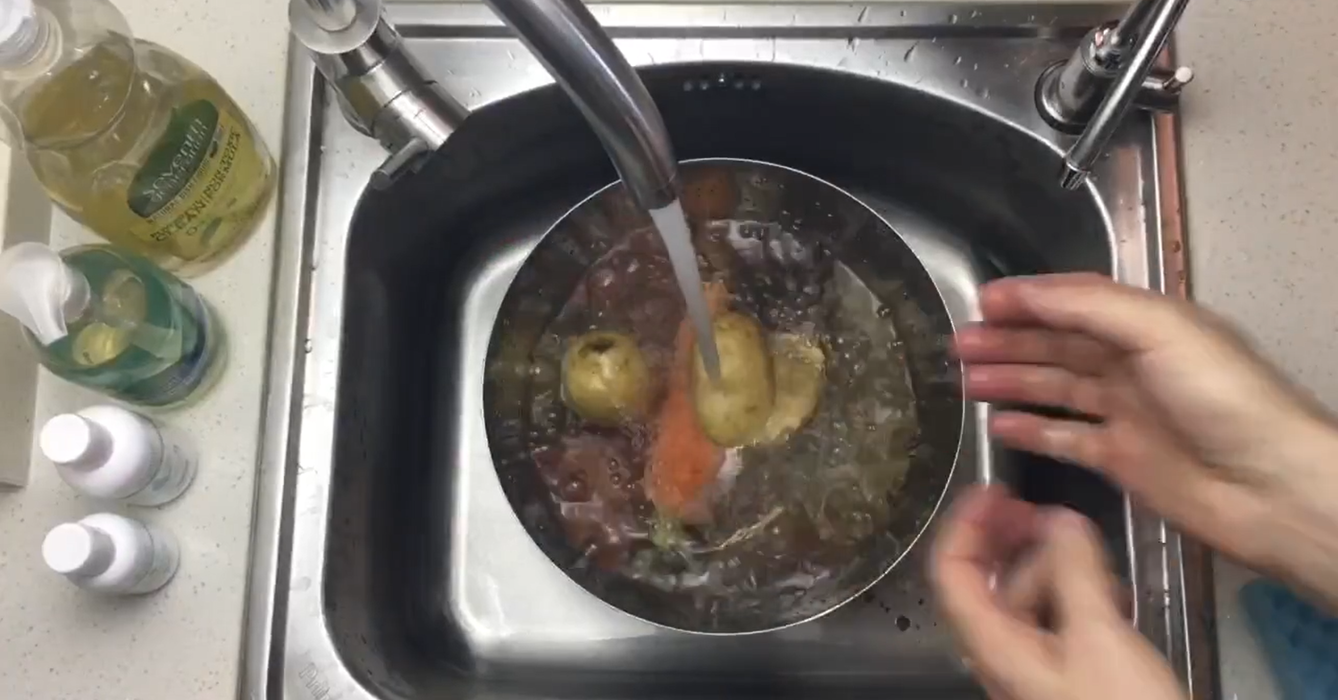 将胡萝卜和土豆切成小丁。也可以借助网兜(或蔬菜切丁器)切成小丁,从而加快烹饪过程。